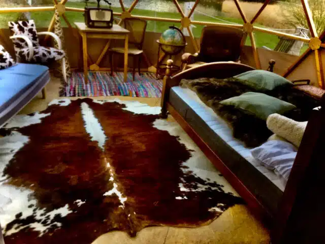 Découvrez nos bulles géodésiques sur pilotis avec terrasse et vue imprenable sur la nature environnante. Il peut accueillir 2 adultes et 2 enfants.