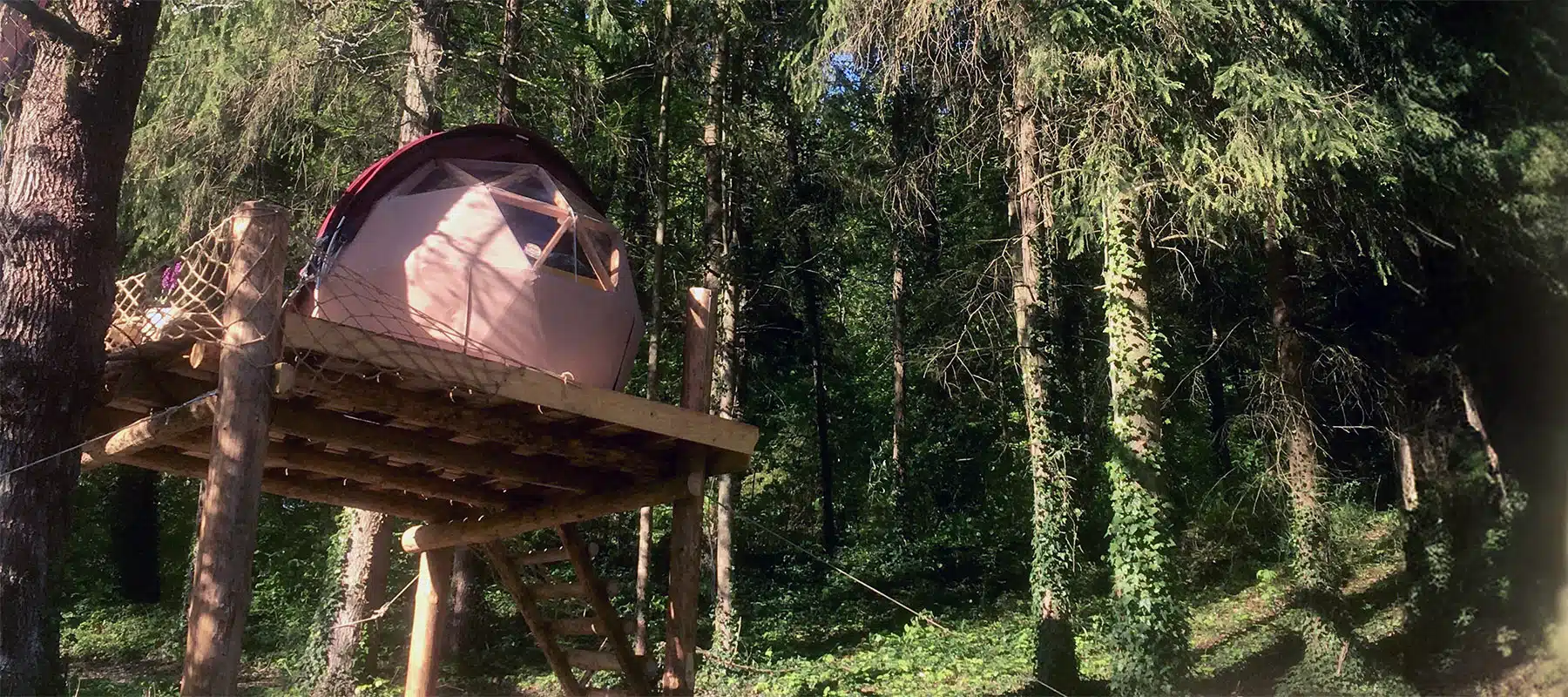 2 personnesDécouvrez nos bulles géodésiques sur pilotis avec terrasse et vue imprenable sur la nature environnante. Ce dôme est perché à 4 mètres contre le grand chêne, juste au bord de l’eau.